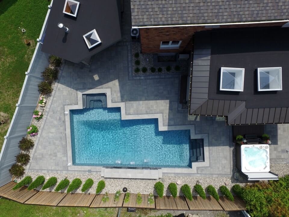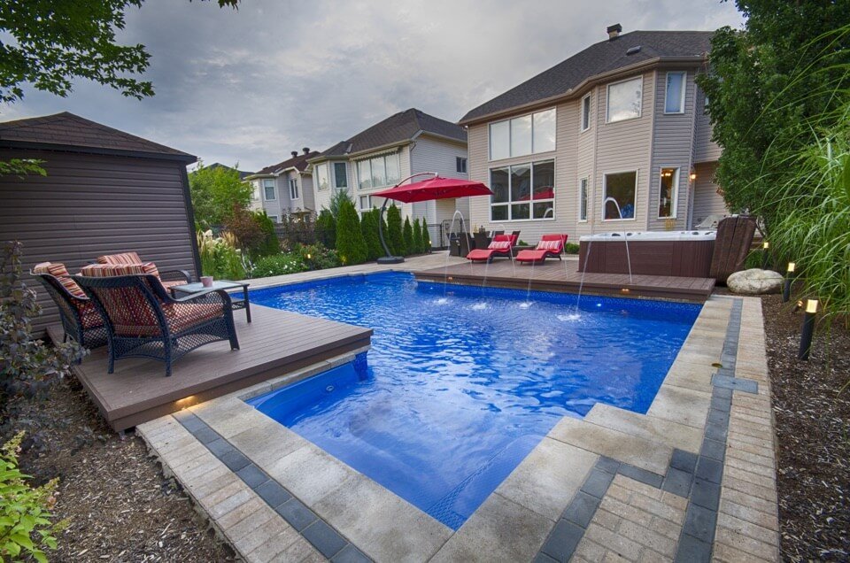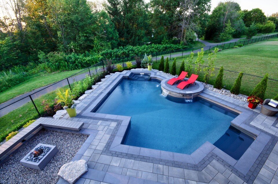 - Custom pools designed in almost any imaginable shape to maximize your yards useable space.