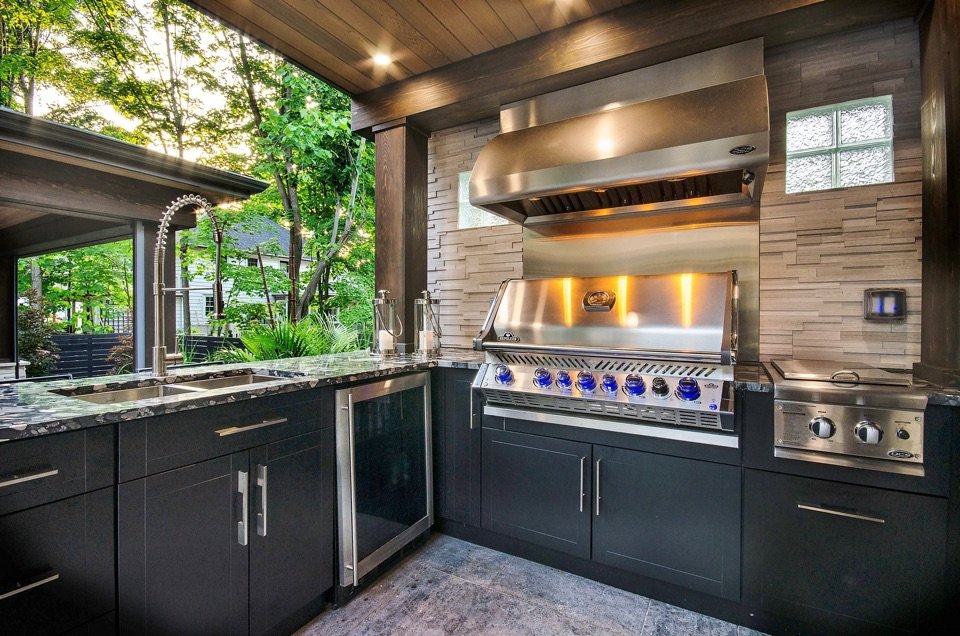 • Outdoor kitchen granite counters top, stand up bar and roof
